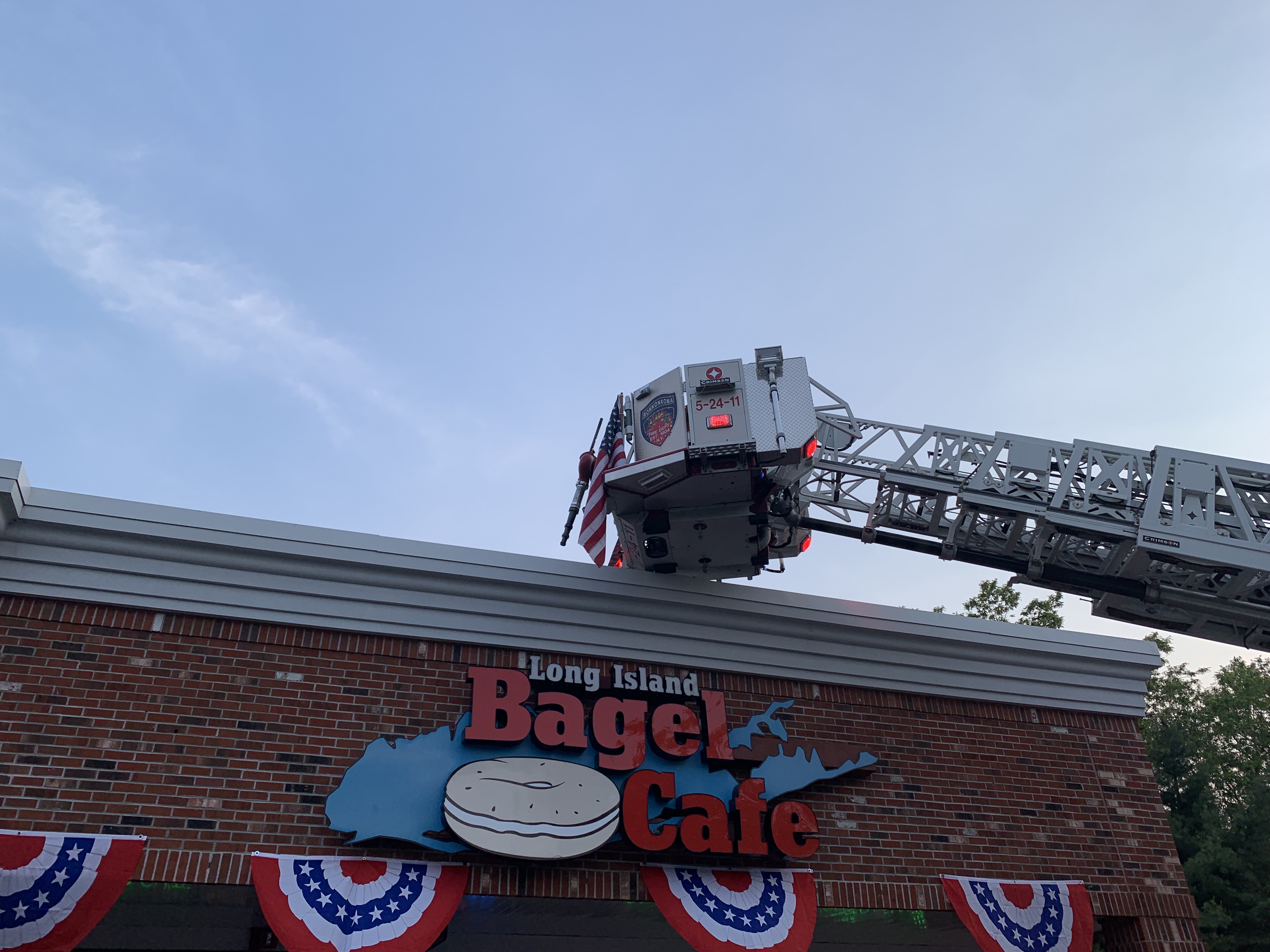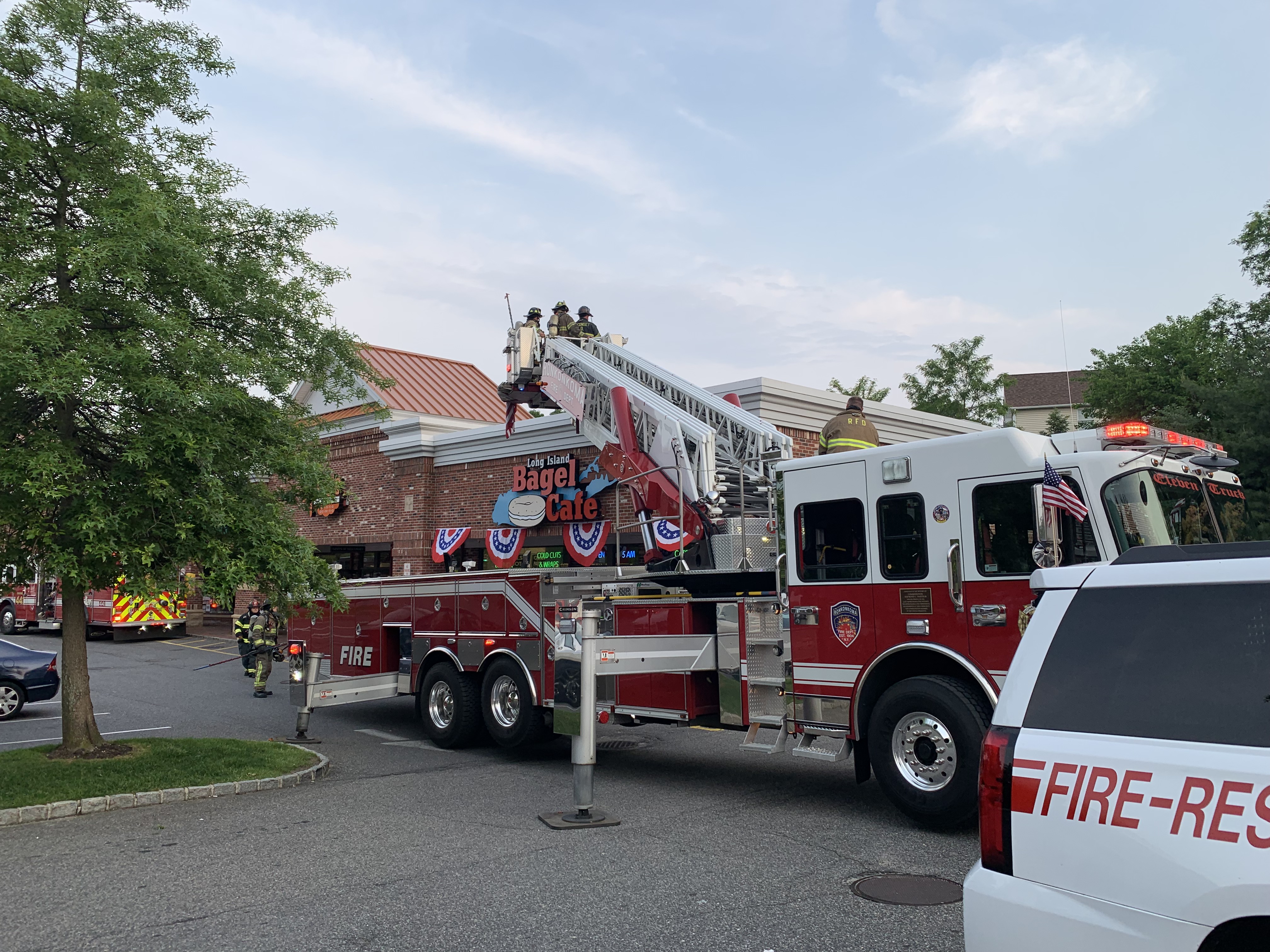 Nesconset Fire Department responds to an automatic fire alarm at the Long Island Bagel Cafe (248 Smithtown Blvd). Units arrive to find smoke in the building. The alarm is re-activated as a structure fire, bringing in units from the Ronkonkoma and St. James FIre Departments. Crews quickly determined that the issue was with a rooftop HVAC unit. The unit was shutdown, the store vented and the Fire Marshal ordered the owner to have the unit repaired. There were no injuries and all units were back in service within 30 minutes.