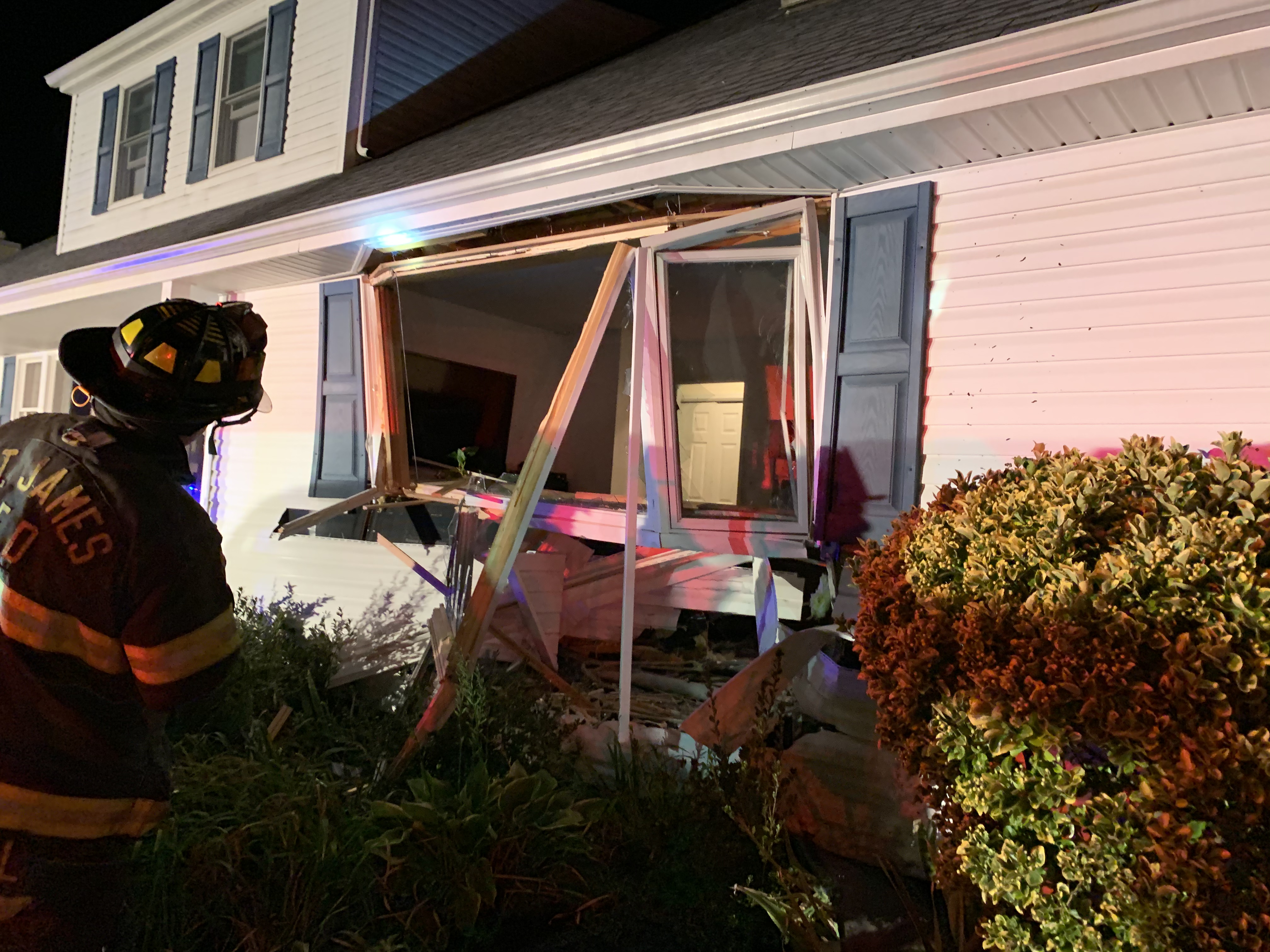 2249 hours. The St. James Fire Department responds to a report of a motor vehicle crash on Third Avenue near Fourth Street. Units arrive to find that the adult male operator of a Ford Excursion lost control of his vehicle when backing out of his driveway and slamming into the house across the street. The vehicle operator refused rescue but an adult male that was in the house was transported via ambulance. Smithtown Fire Marshals and a Building Inspector were called to the scene to follow up.
