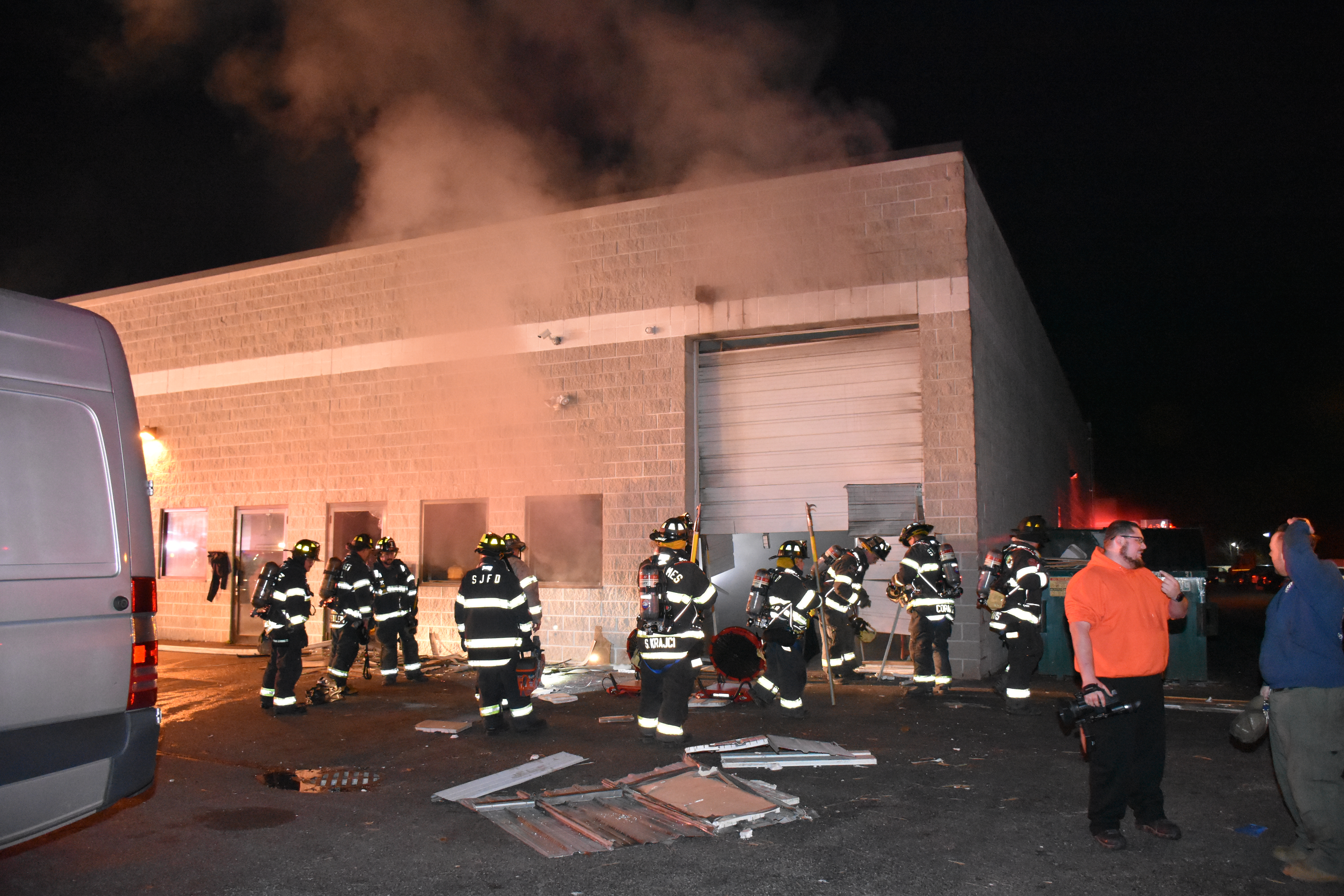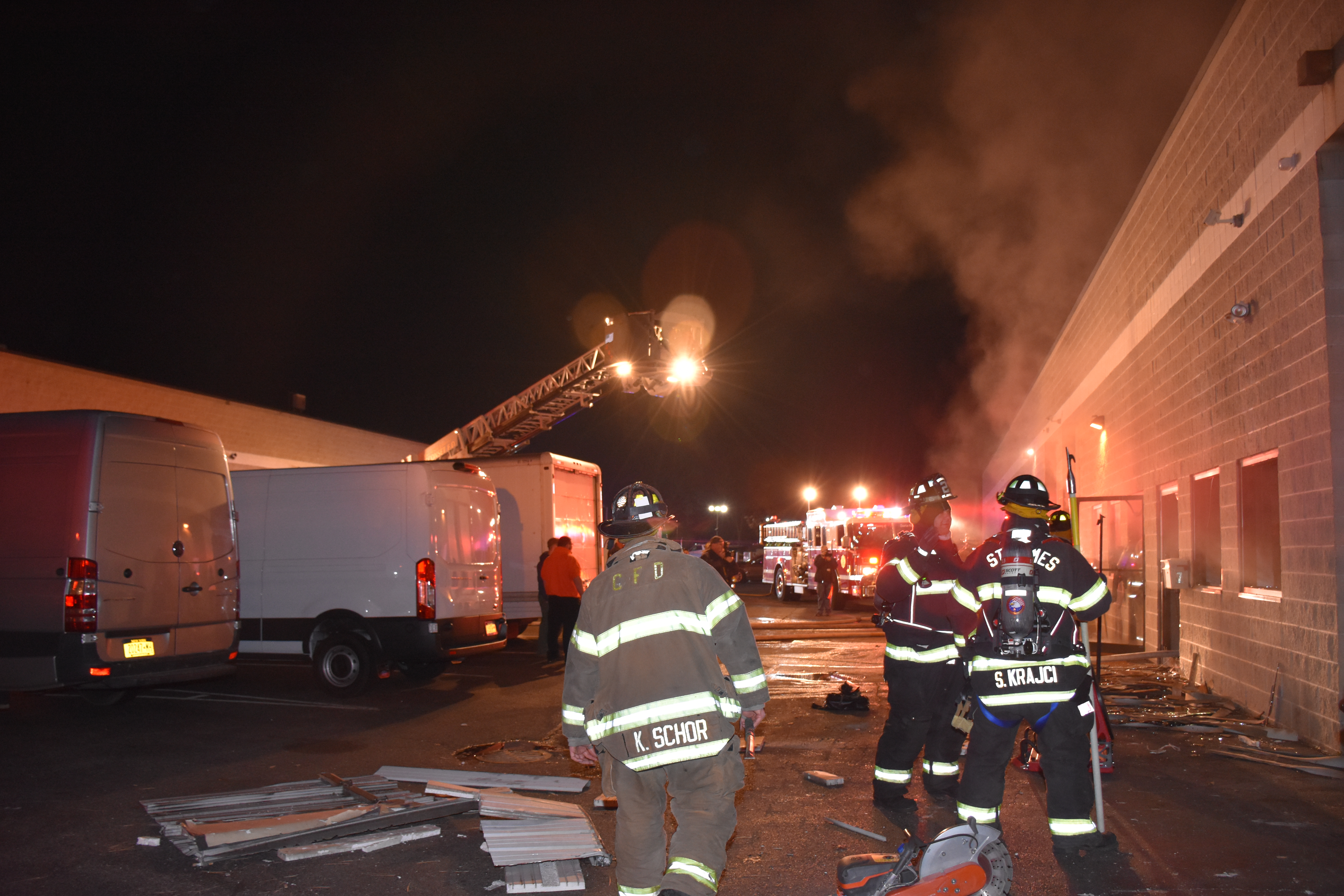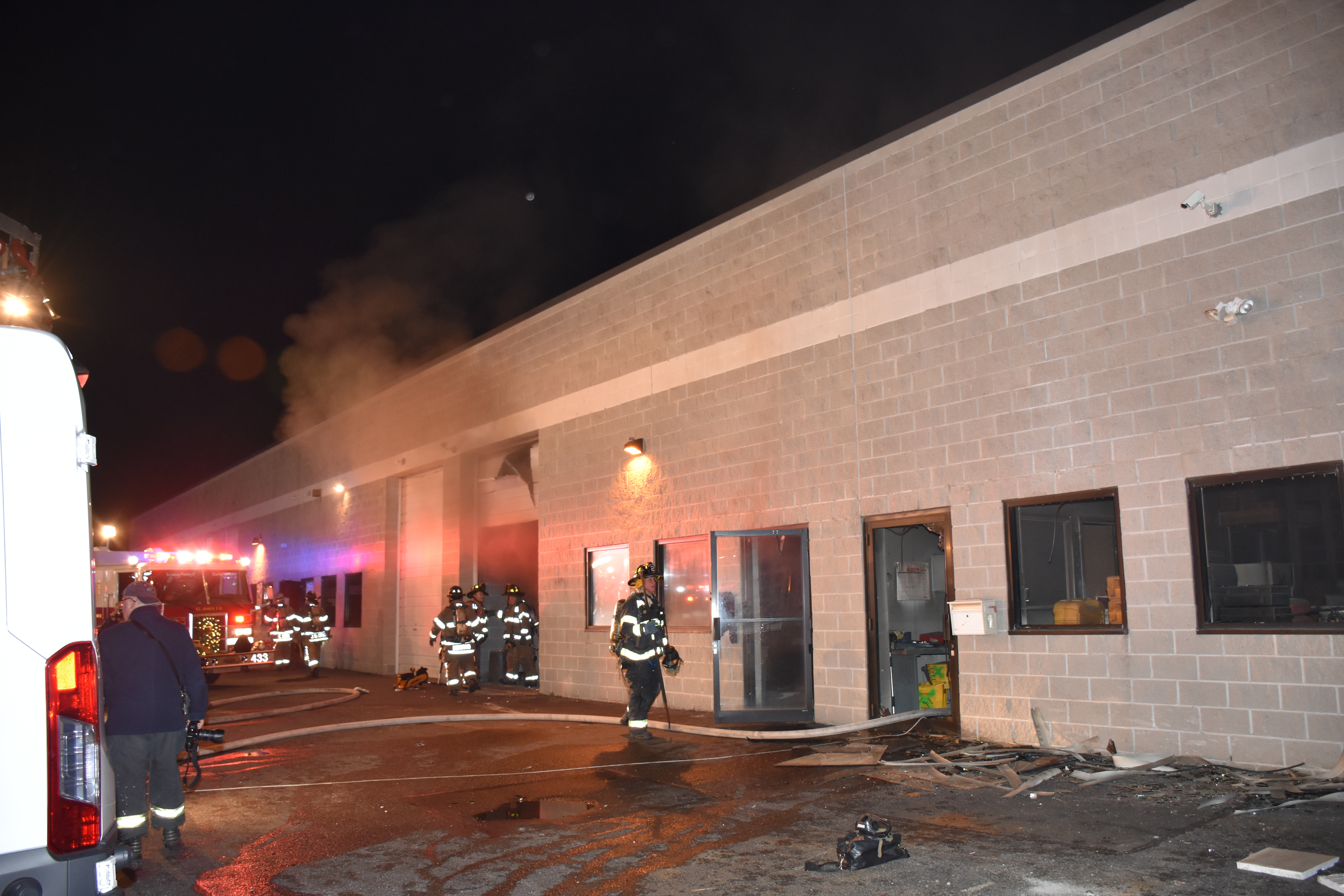 2222 hours. The Nesconset Fire Department is dispatched to on a telephone alarm from subject who states that a nest smoke detector activated in his suite within a single story multiple occupancy commercial building at 646 Middle Country Road. Firefighters arrived and found a light smoke condition within the suite. Crews searched further and found smoke within all twelve suites of the building. The alarm was reactivated as a working fire, bringing mutual aid in from St. James, Ronkonkoma, Centereach, Hauppauge, Smithtown, Lakeland, Nissequogue and Commack Fire Departments. Crews forced entry into all of the businesses and found an active fire in a wood shop on the east end of the building. The fire was extinguished with a 2½ inch line. Fire damage was confined to the one unit, which is occupied by a construction company. Smoke damage was light to moderate throughout the 220 foot by 100 foot building. Firefighters operated for approximately 90 minutes.