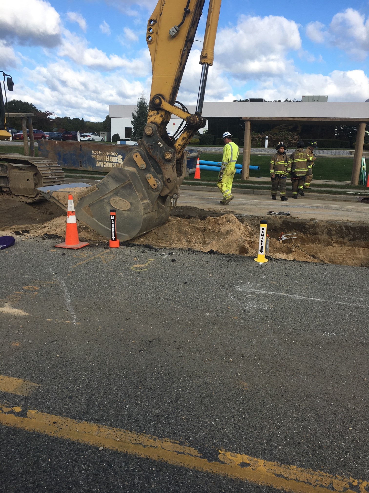 Contractors working on drainage improvements along the Motor Parkway corridor in Hauppauge struck a gas main on the north side of the street. Hauppauge Fire Department personnel along with Suffolk Police closed Motor Parkway until PSE&G were able to shut down the leak. FD personnel continuously monitored atmospheric conditions in and around the buildings in the vicinity of the leak.