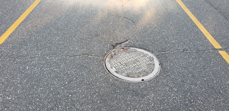 The sewer system in the industrial park is a common positive system that is interconnected and dumps out into a sump on Motor Parkway. The leaking fuel traveled throughout the system and spilled out into the sump which is approximately one mile away from the incident location.