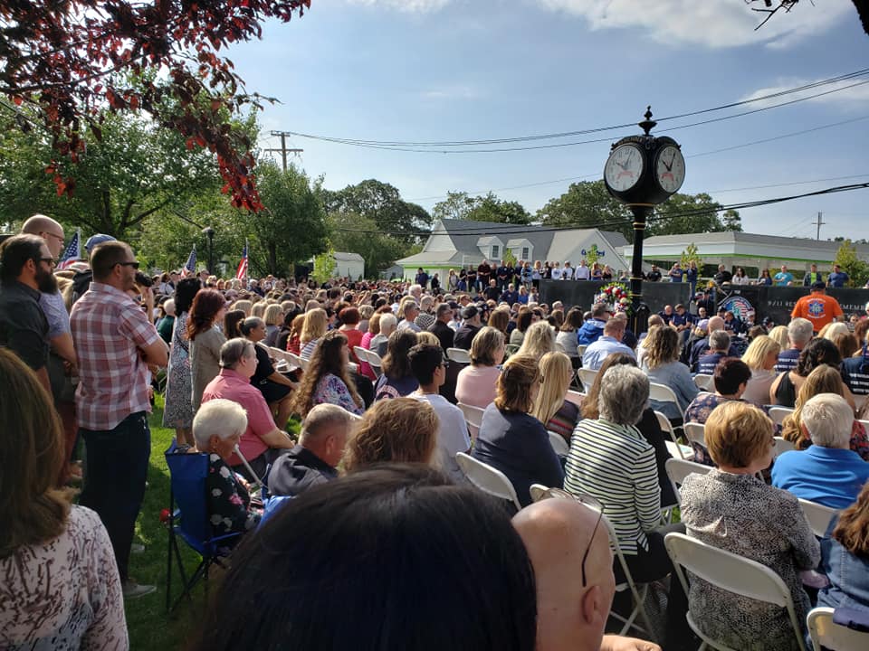 On the 18th anniversary of 9-11, numerous memorial services were held in the area. Services were held at the Hauppauge Fire Department, the St. James Fire Department, Commack Volunteer Ambulance Corp, Commack High School, Centereach Fire Department, Main Street Smithtown and at Responders Park in Nesconset. Hundreds of people attended the events.