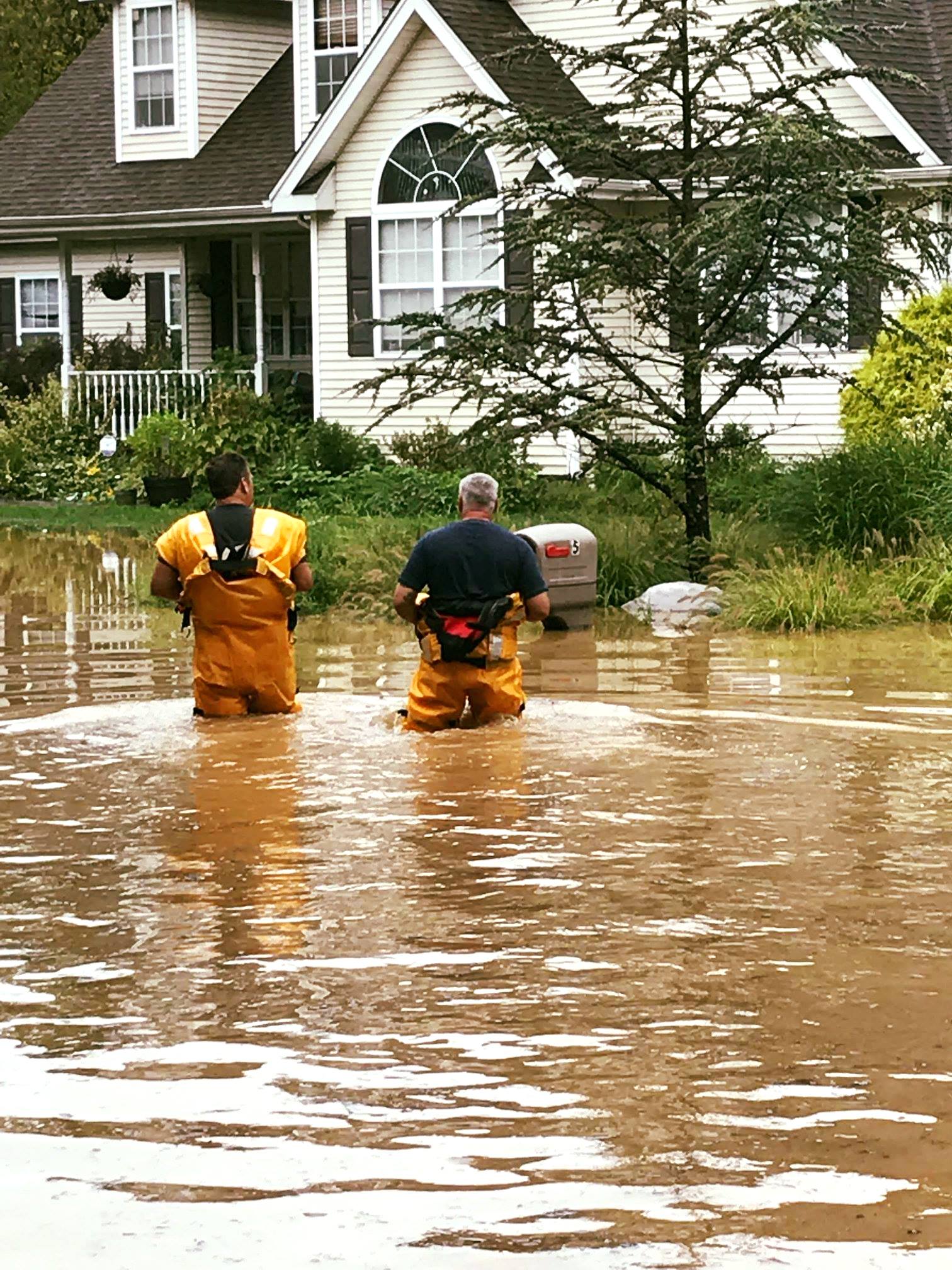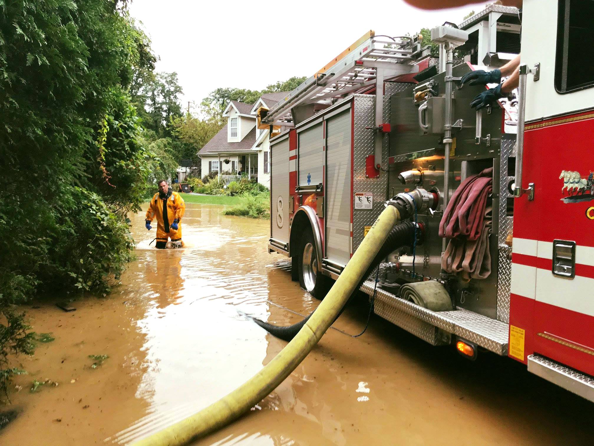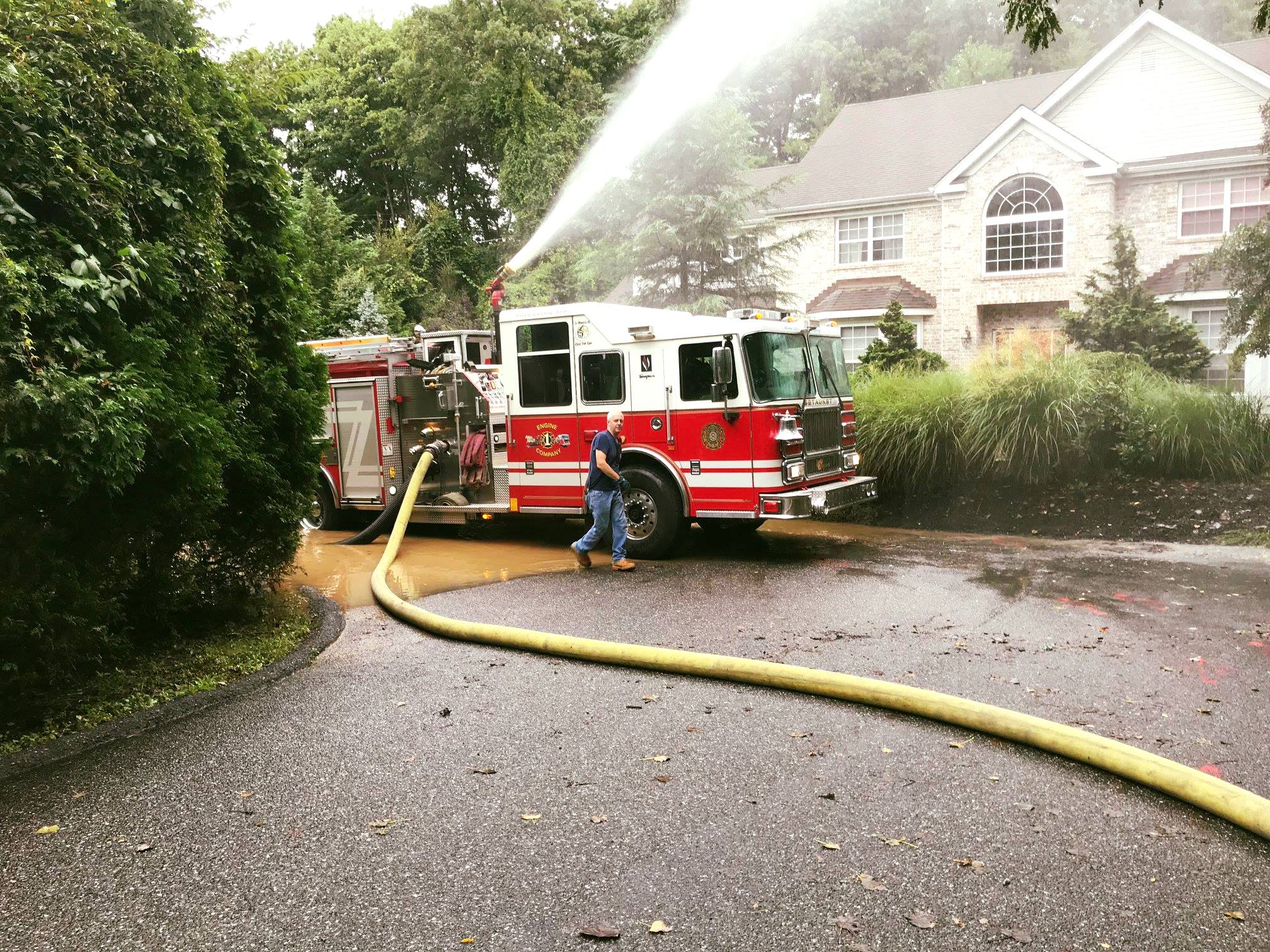Setauket fire department responded to a call for a water hazard following torrential down pour. Multiple homes in the neighborhood were flooded. Emergency personnel secured power to the homes and Dewatered the neighborhood.