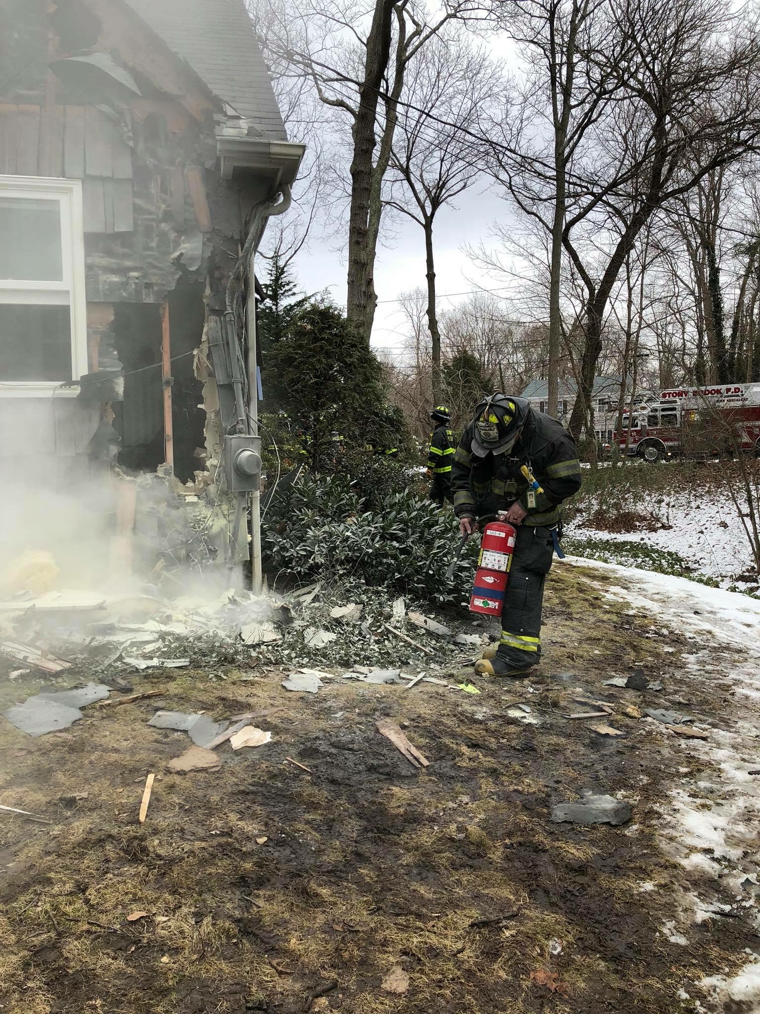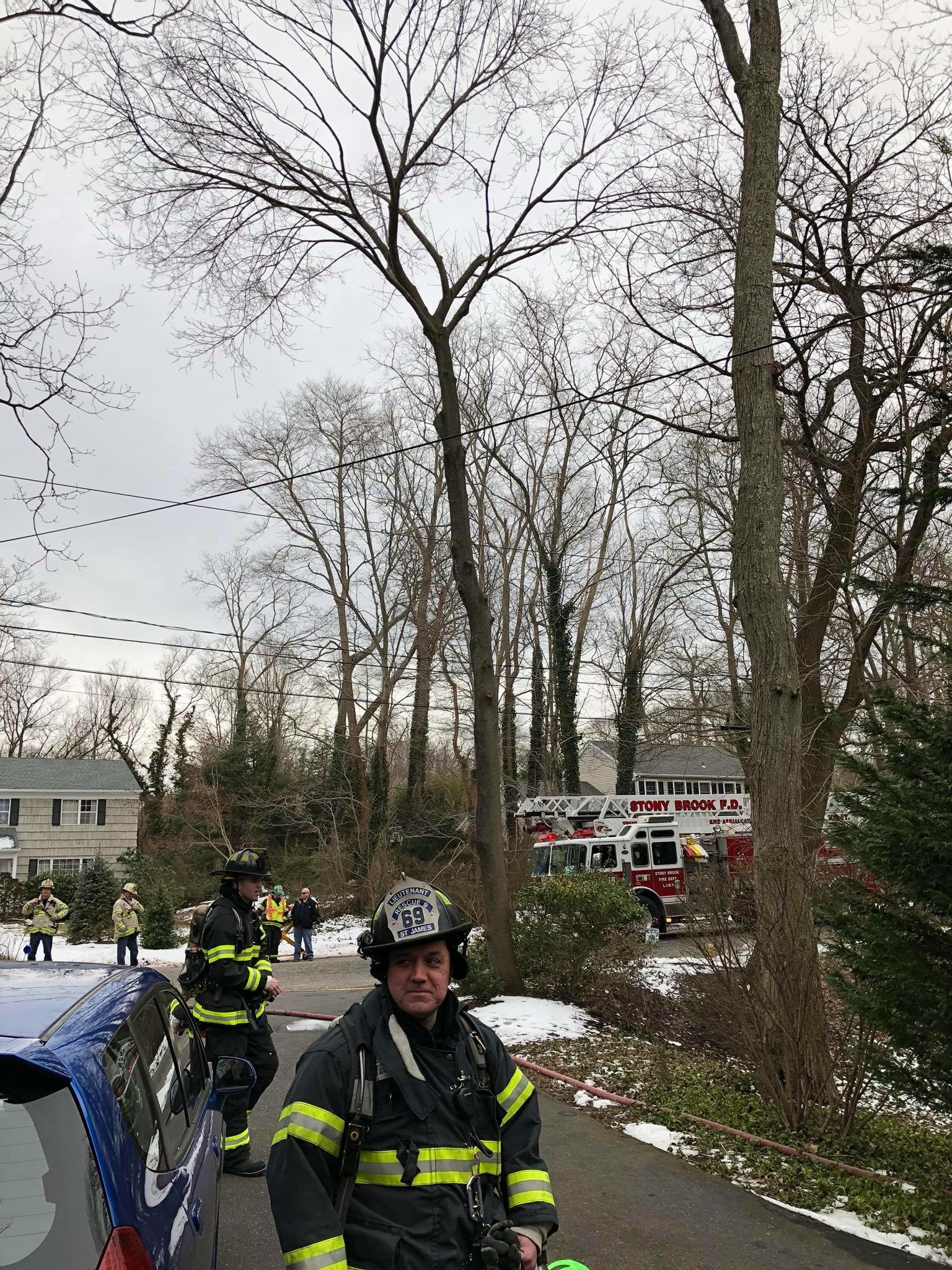 1115 hours. The Stony Brook Fire Department is dispatched to a report of a house fire at 29 Woodbine Avenue off Dogwood Road. Units arrive to find active fire in one of the walls with wires down and burning outside. A working fire was transmitted bringing Setauket FD to the scene with an engine, ladder and an ambulance and the St. James Fire Department with a RIT. Crews made quick work of the fire, all searches were negative and all units cleared from the scene within an hour. The Brookhaven Town Fire Marshals Office is handling the origin and cause investigation.