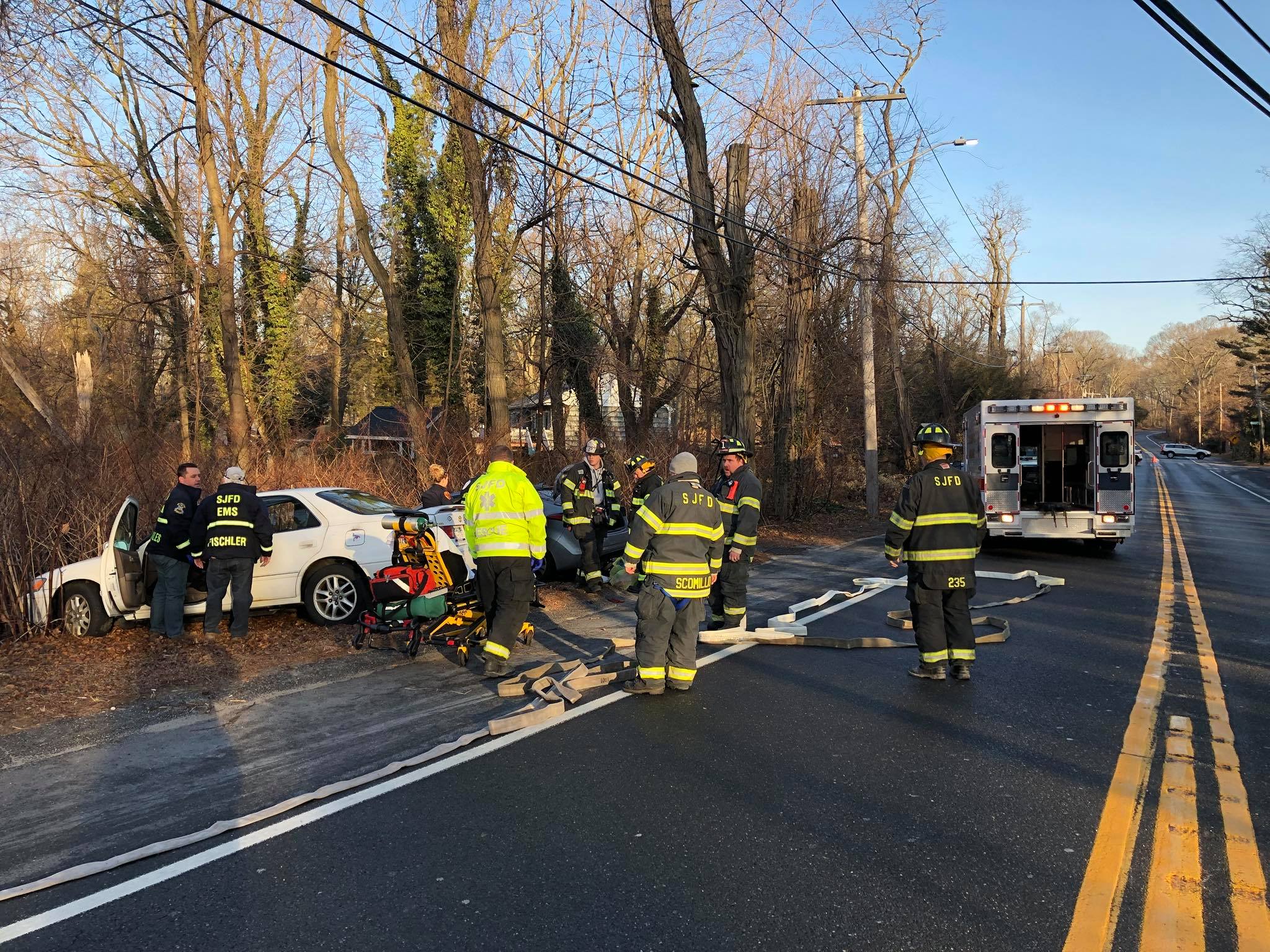 St. James FD responded to Route 25A & Acorn Road for a two car motor vehicle collision. Units arrived to find that both vehicles had left the roadway and were in the woods. St, James operated with an engine, their heavy rescue and an ambulance. The Stony Brook Fire Department also sent an ambulance as St. James second rig was already out on another call.