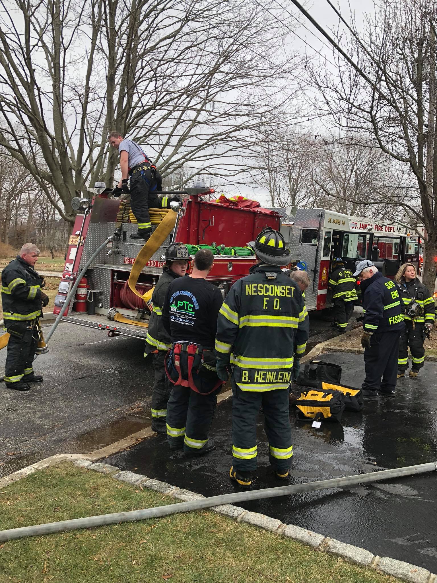 1316 hours. St. James Fire Department was dispatched to a reported house fire on Hobson Avenue. Chief of Department Edward Springer Jr. was the first in and after a quick size up determined that there was an active fire in the walls and floor between the basement and the ground level of a large two story private dwelling. Engine 4-3-3 was the first due engine. The crew stretched an 1 3/4 hand line through the front door and attacked the fire. Simultaneous to this, other FD personnel ventilated and searched the structure for victims. This quick attack confined the fire damage to a small section of the house. St. James Volunteer Fire Department operated with Chief of Department Edward Springer Jr, 3rd Assistant Chief Frank Sapienza, Engine’s 1, 3, Ladder 7, Rescue 9 and EMS Company 6. The Nesconset Fire Department sent Engine 4-4-1, and the Stony Brook Fire Department sent a Rapid Intervention Team. The Nissequogue Fire Department sent an engine to Saint James FD to cover the district for the duration of the incident.