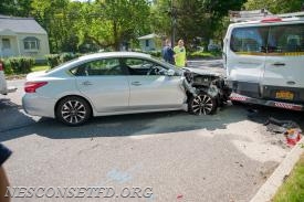 The Nesconset Fire Department responds ot a traffic collision involving two vehicles on Alexander Avenue. No extrication is required. Once subject is transported to the hospital with non-life threatening injuries.