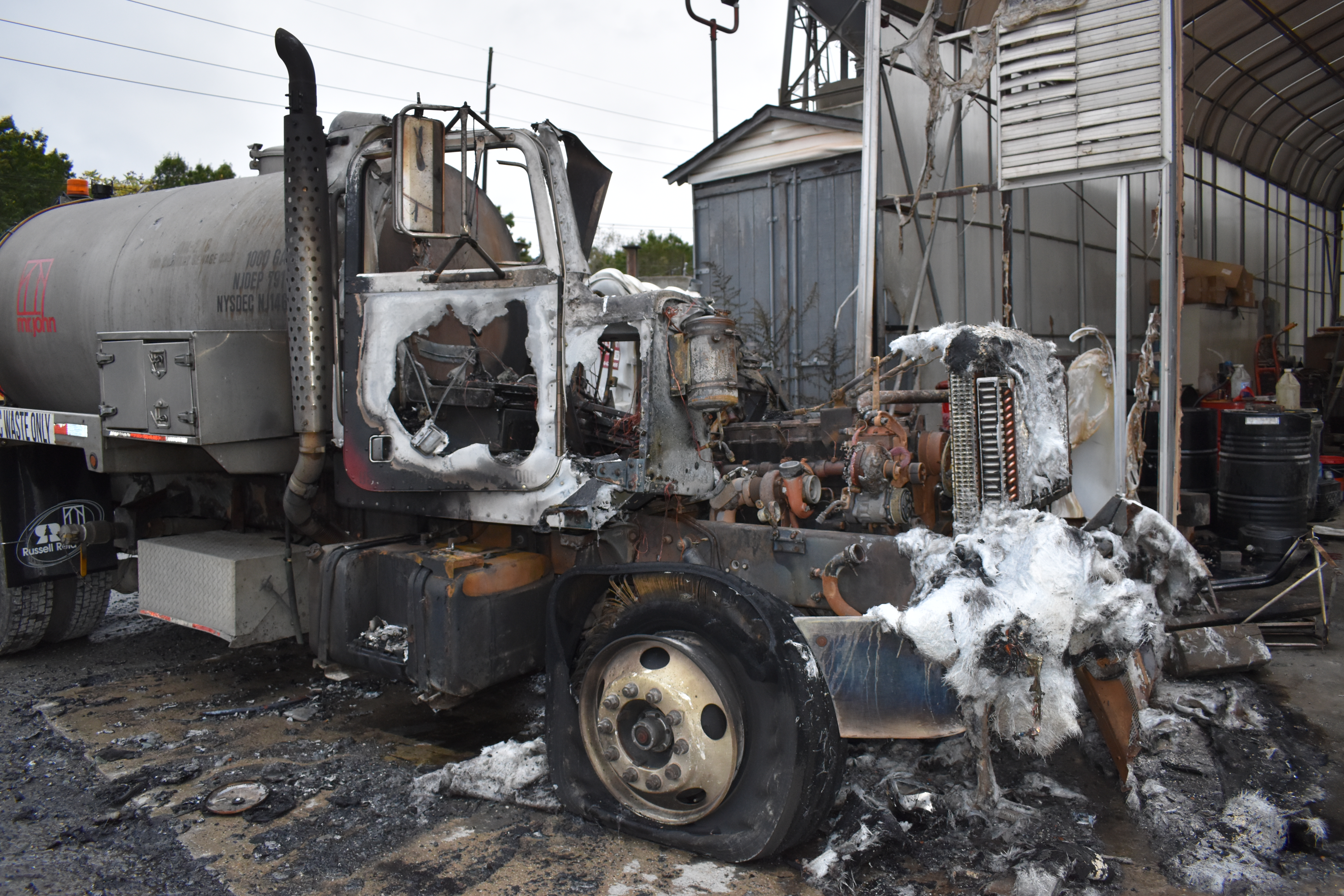 0647 hours. The Kings Park Fire Department is dispatched to Pelkowski Precast Corp at 294A Old Northport Road in regard to a vehicle fire. Crews arrive to find a Freightliner port-a-john tank truck burning near a building. The fire is extinguished without incident and the face of the building is opened up to check for extension. Fire Marshals from the Town of Smithtown Department of Public Safety were called in to investigate. This was deemed an accidental fire. There were no injuries, the truck was a total loss. Th fire Department was back in service shortly after 9AM.