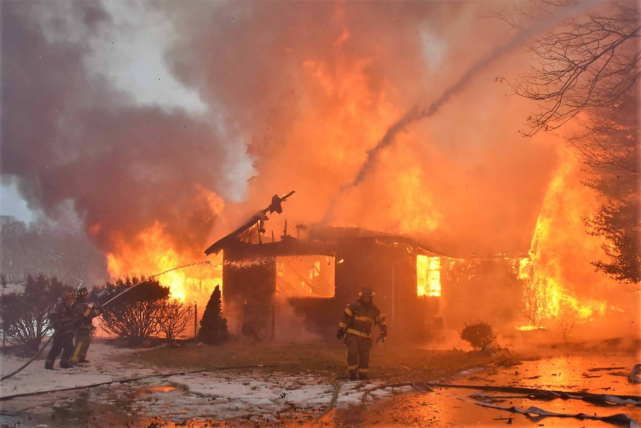 1626 hours. Ronkonkoma, Farmingville and Nesconset Fire Departments are dispatched to a report of a structure fire on the grounds of the Cenacle off Portion Road and Smith Road in the Ronkonkoma Fire District. Ronkonkoma Assistant Chief Kevin Murray was first in and advised of a heavily involved single story 30X30 private dwelling. Chief Murray had the first due engine lay in and deploy their deck gun. Three 2 and one half inch lines and one inch and three quarter line were stretched and also operated, all from the exterior. Early on, the roof and part of the building collapsed and Chief Murray requested an excavator from the Town of Brookhaven to knock the remainder of the building down. The main body of fire was knocked down by 1712 hours but units remained on scene until approximately 2000 hours. Ronkonkoma, Holbrook, Farmingville and Nesconset FDs operated at the scene. Centereach FD sent an engine to cover Ronkonkoma for the duration. Fire Marshals from the Town of Brookhaven and Suffolk Police Arson Detectives are handling the origin and cause investigation. There were no injuries,